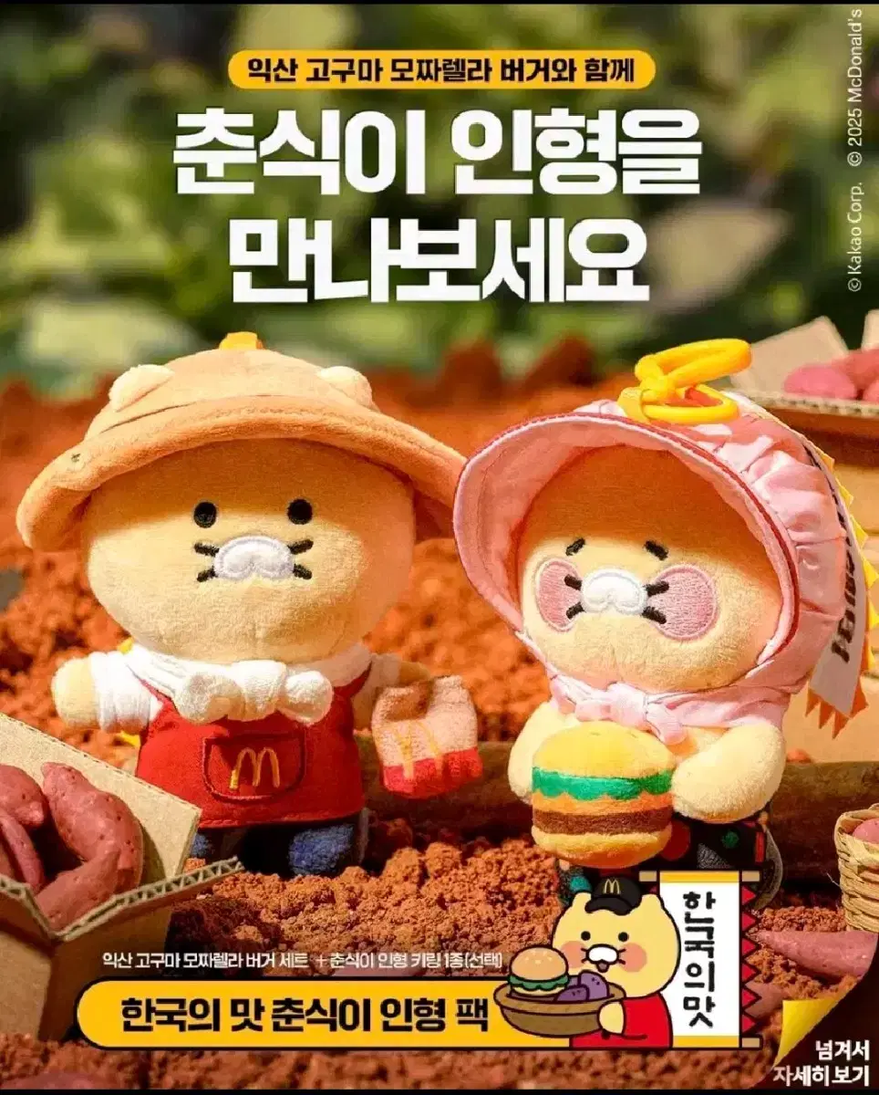 익산 고구마 모짜렐라 버거의 달콤 고소한 맛과 춘식이 굿즈의 귀여움을 한 번에 경험해보세요! 재고가 모두 소진되기 전, 가까운 맥도날드 매장을 찾아 특별한 굿즈를 득템해 보시길 바랍니다 😊