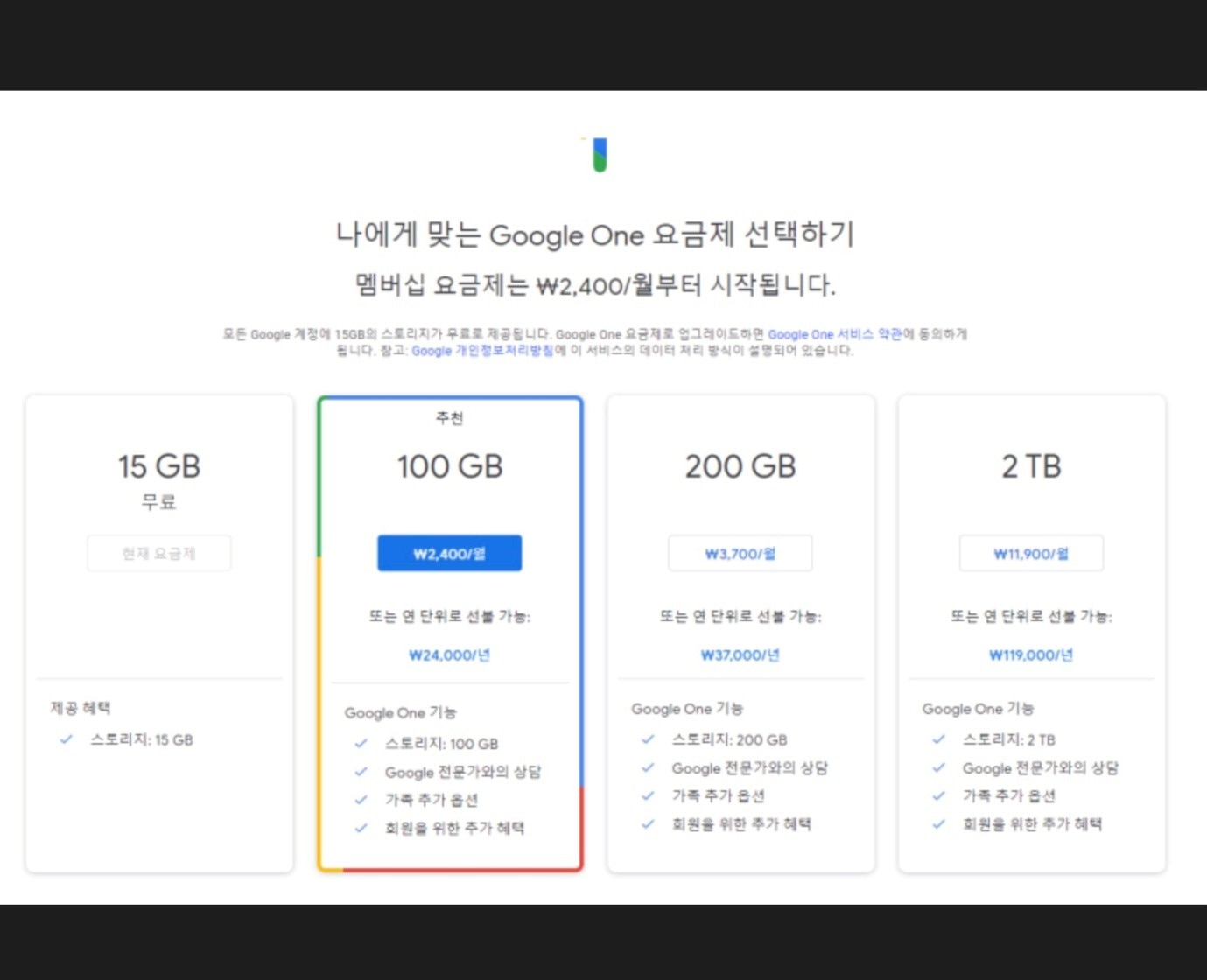 A: 기본으로 제공되는 15GB를 초과하면 구글 원(Google One)을 통해 유료 요금제를 선택할 수 있습니다. 100GB부터 2TB까지 다양한 옵션이 제공됩니다.
